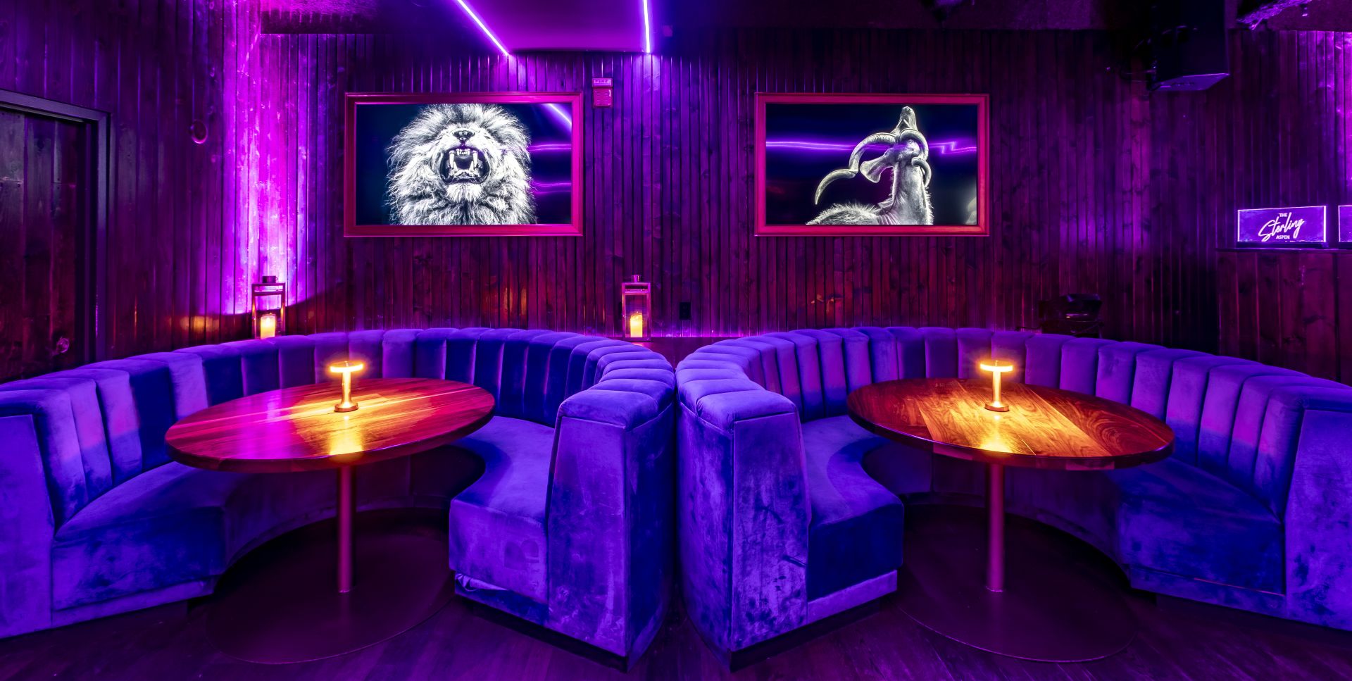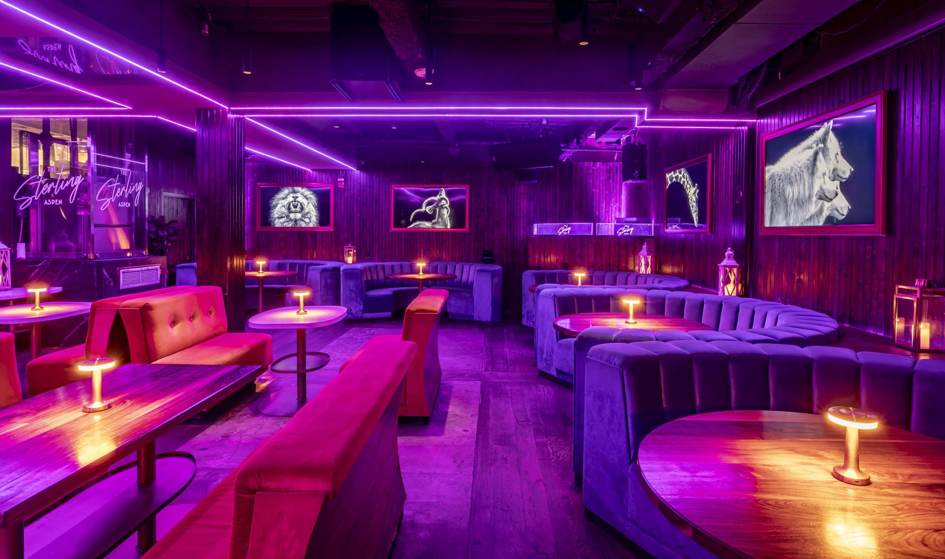 The Sterling Aspen’s floor plan unfolds over a generous 2,500 sq feet, presenting a harmonious blend of contemporary design elements and functional spaces. At its heart lies a centrally located bar, inviting and accessible from every corner, surrounded by diverse seating arrangements that range from intimate plush sectionals to more communal settings. Strategically positioned screens dot the venue, enhancing branding or visual presentations. The layout has been masterfully crafted to facilitate smooth transitions, allowing the venue to effortlessly morph from a laid-back lounge ambiance to an electrifying nightclub setting, accommodating gatherings of varying sizes, from intimate groups of 20 to grand assemblies of up to 180 guests.