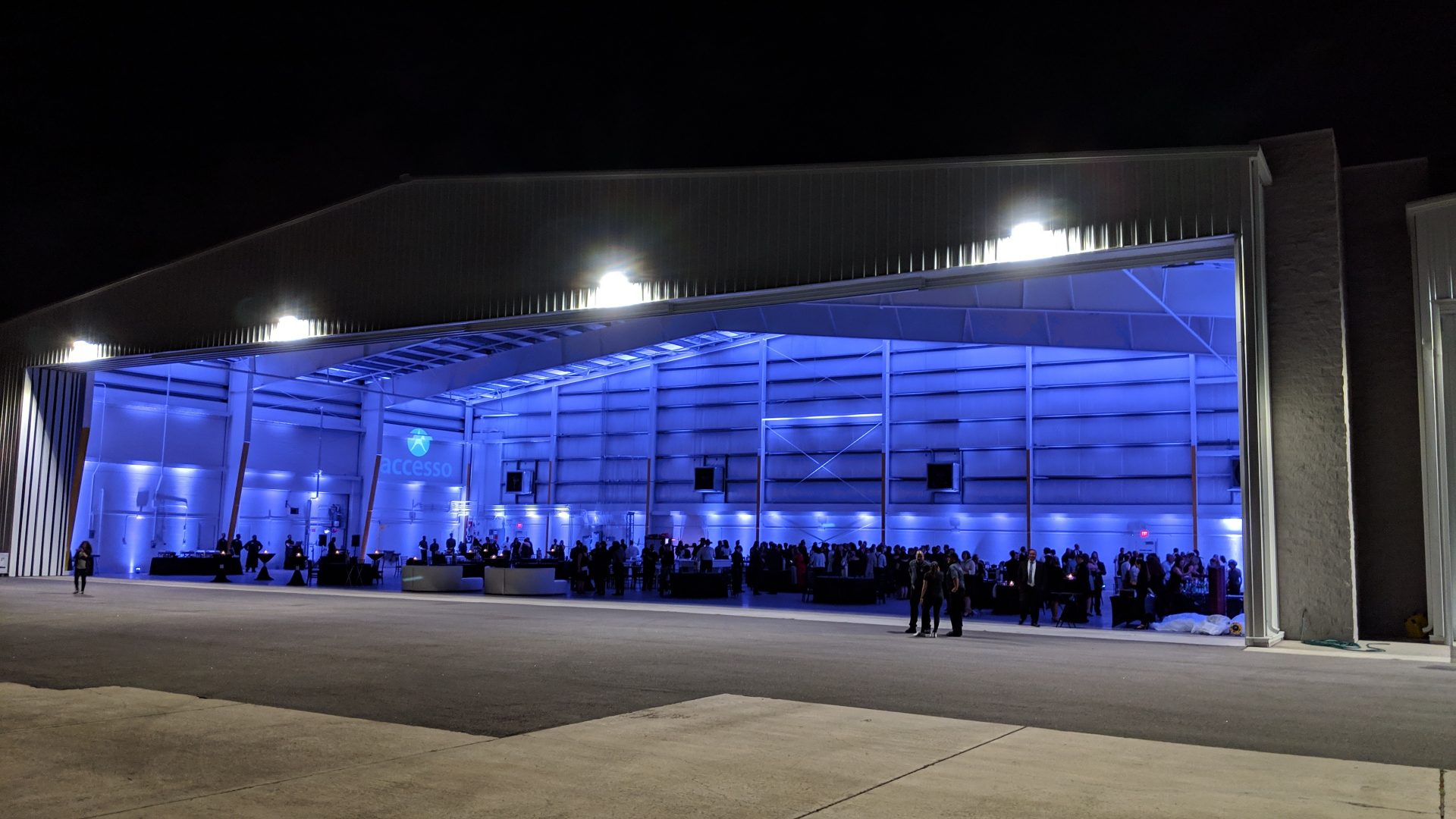 ‘The Hangar’ boasts more open square footage than almost any venue option in Orlando outside of a hotel or convention center with over 20,000 square feet of open floor space for rent. 200′ wide by 100′ deep with a giant retractable door on the side facing the tarmac.